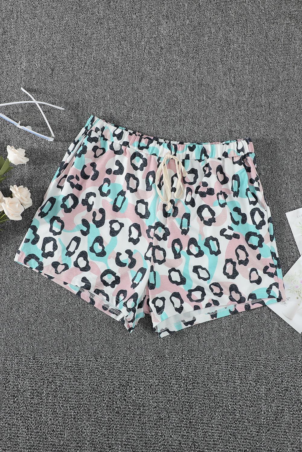 Leopard Print Elastic Waist Drawstring Shorts With Pocket