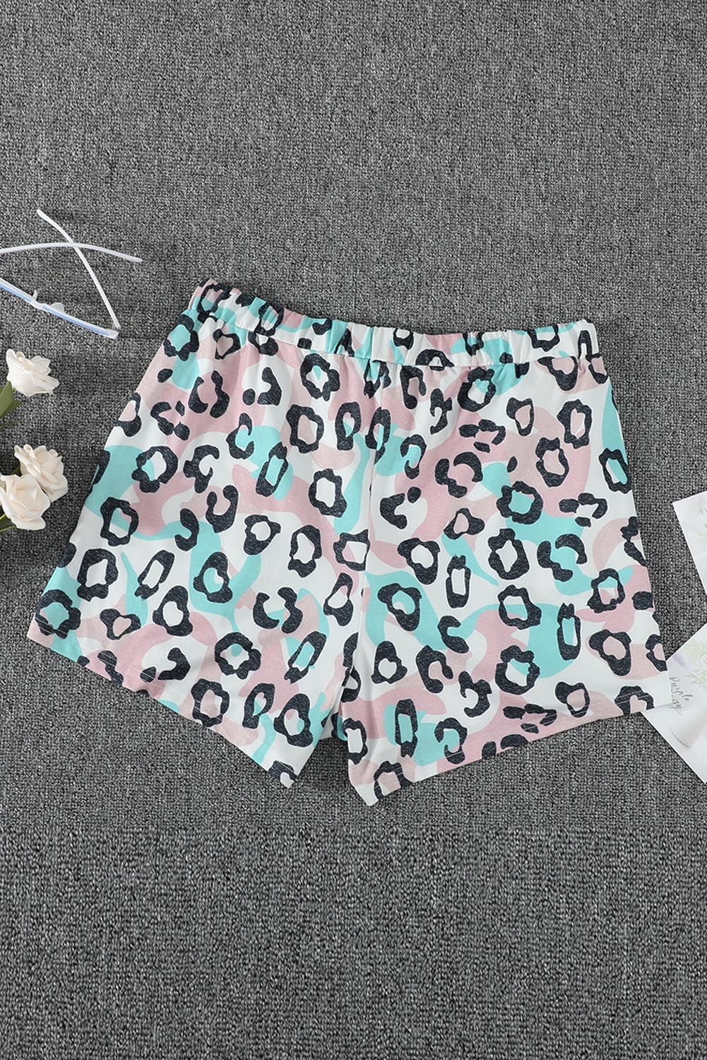 Leopard Print Elastic Waist Drawstring Shorts With Pocket